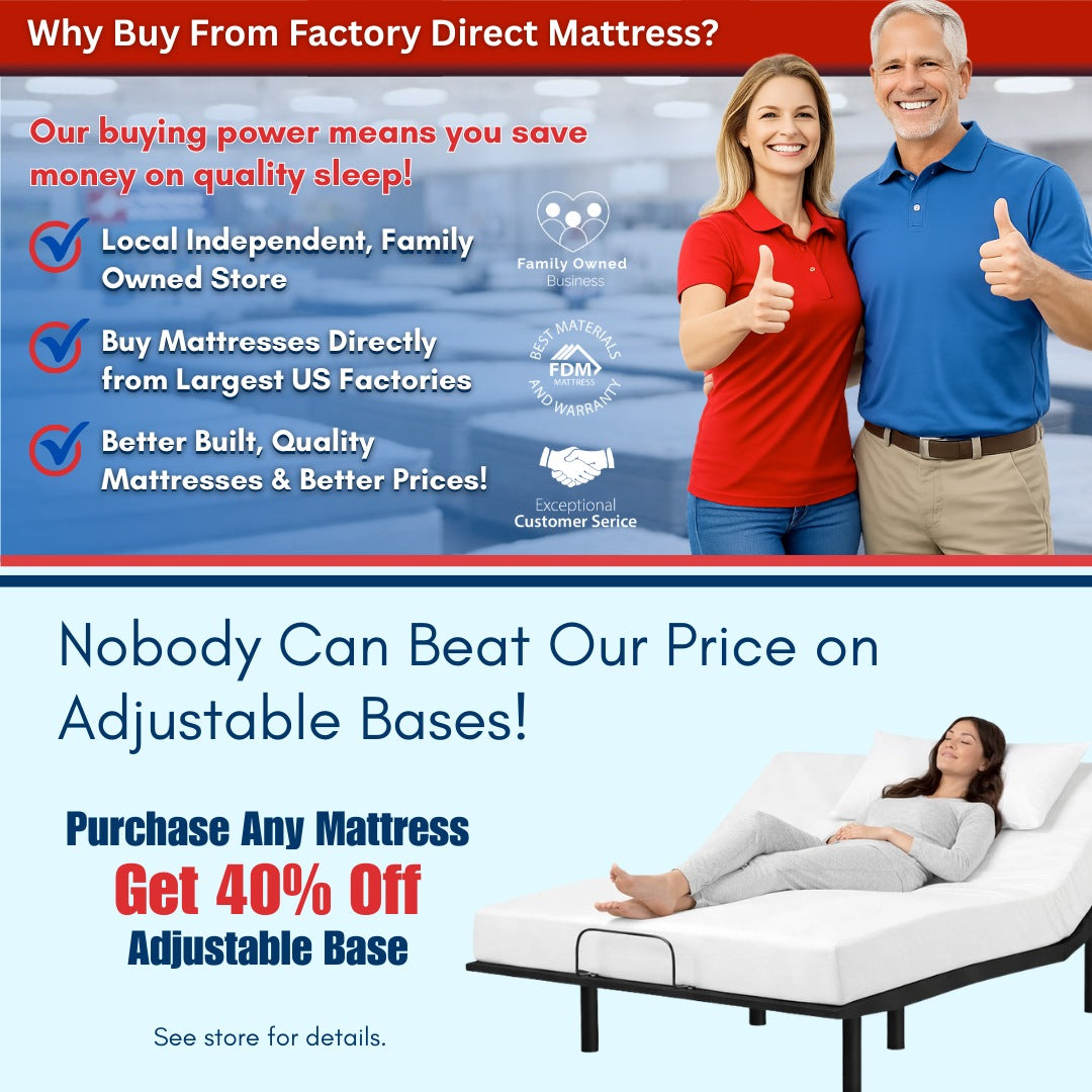 Your best night’s sleep starts here – welcome to Factory Direct Mattress, where comfort meets value!